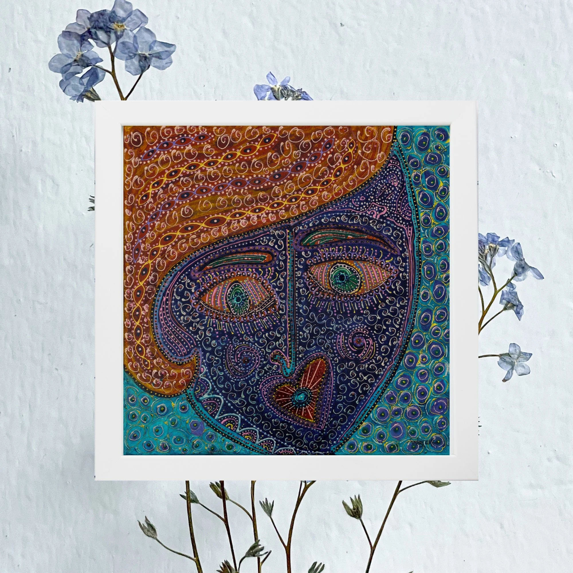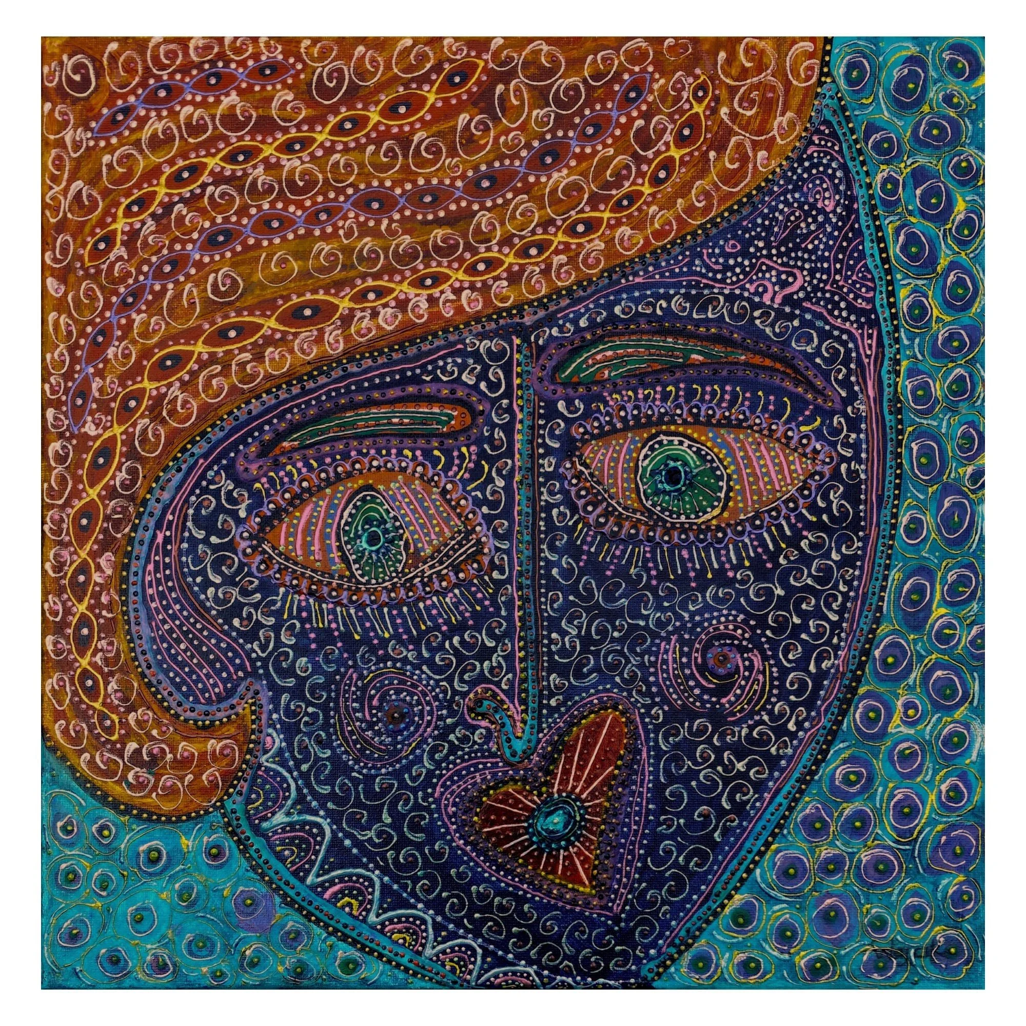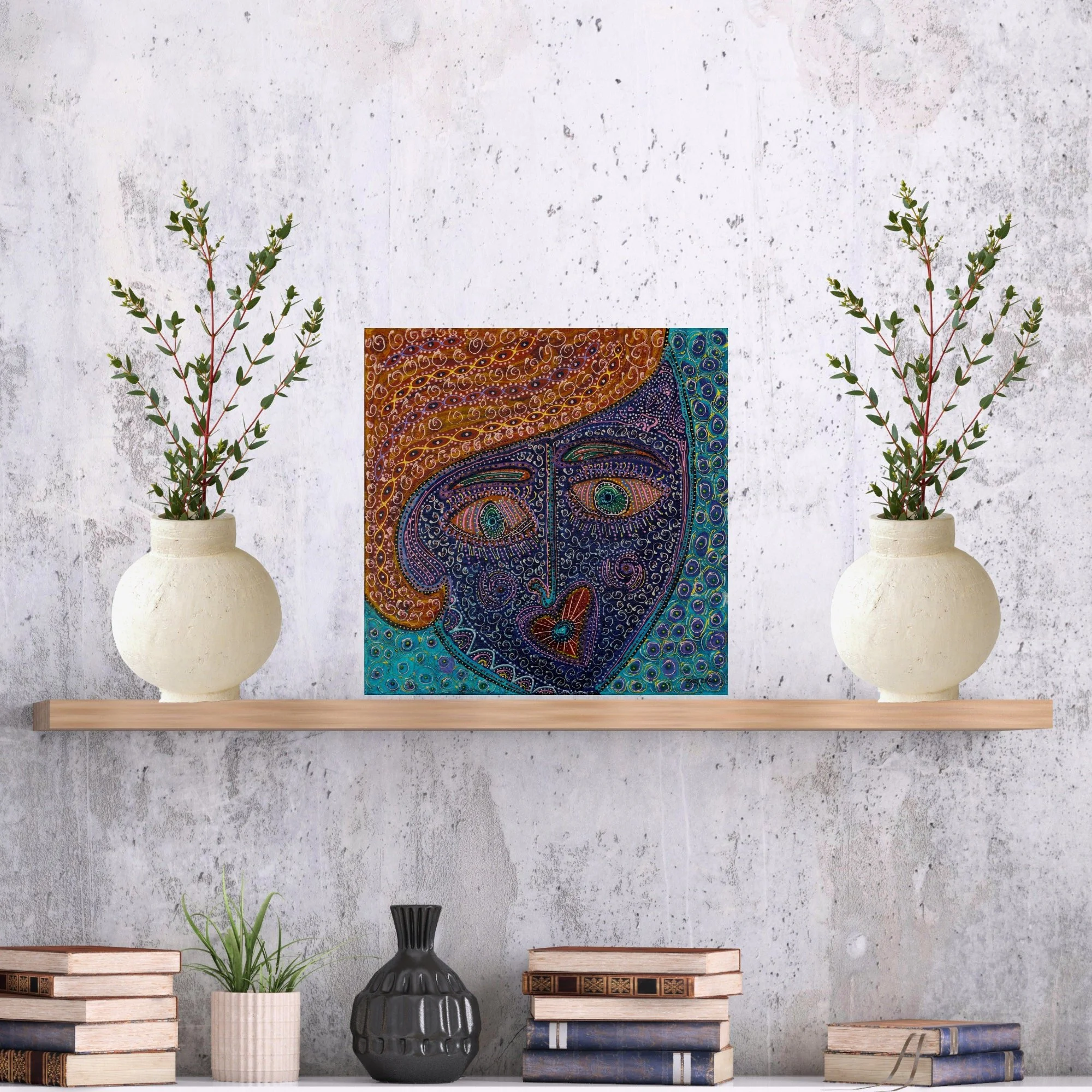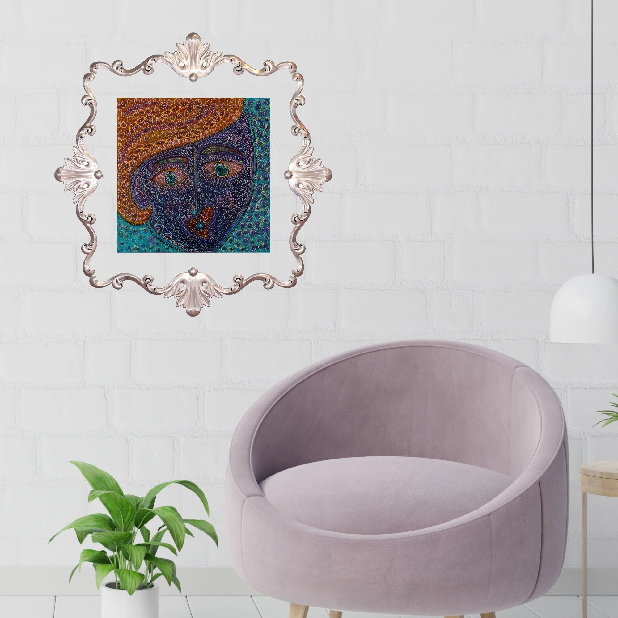 Painting measures 14" length x 14” width, 1/2" depth. Ready to hang, wire hardware attached to back.