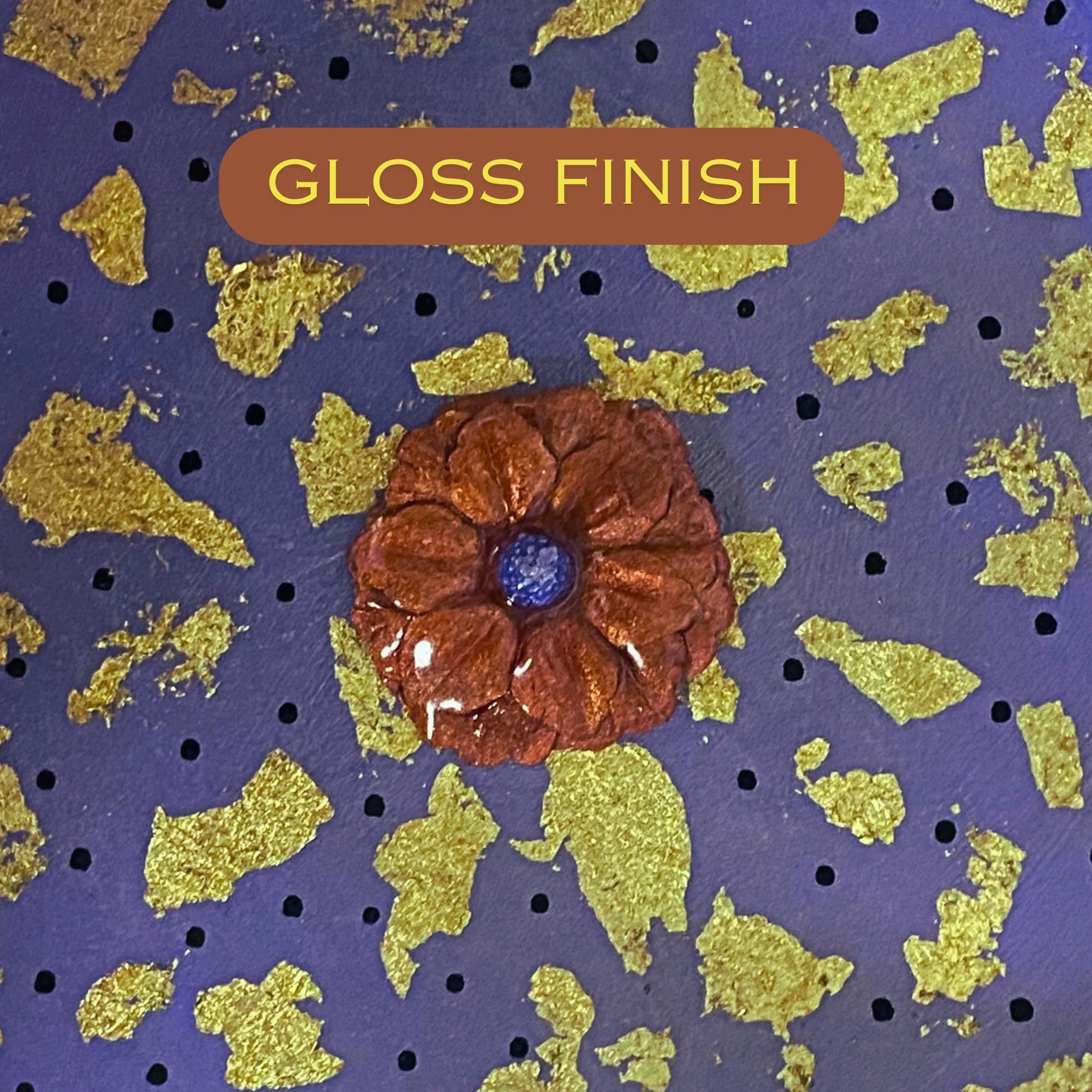 Designed as a display piece - indoors only. A high gloss finish accents the dynamics of the colors and embellishments used in each design.