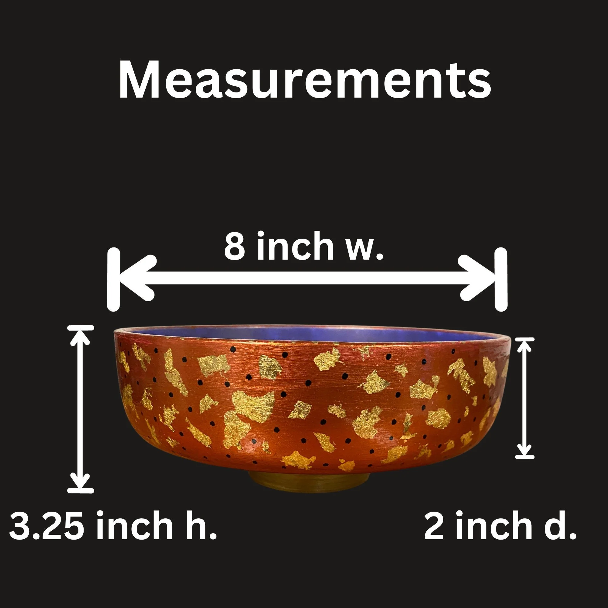 Full art piece measures: 8" round width x 3.25" high, minor imperfections exist as this is a handcrafted piece.