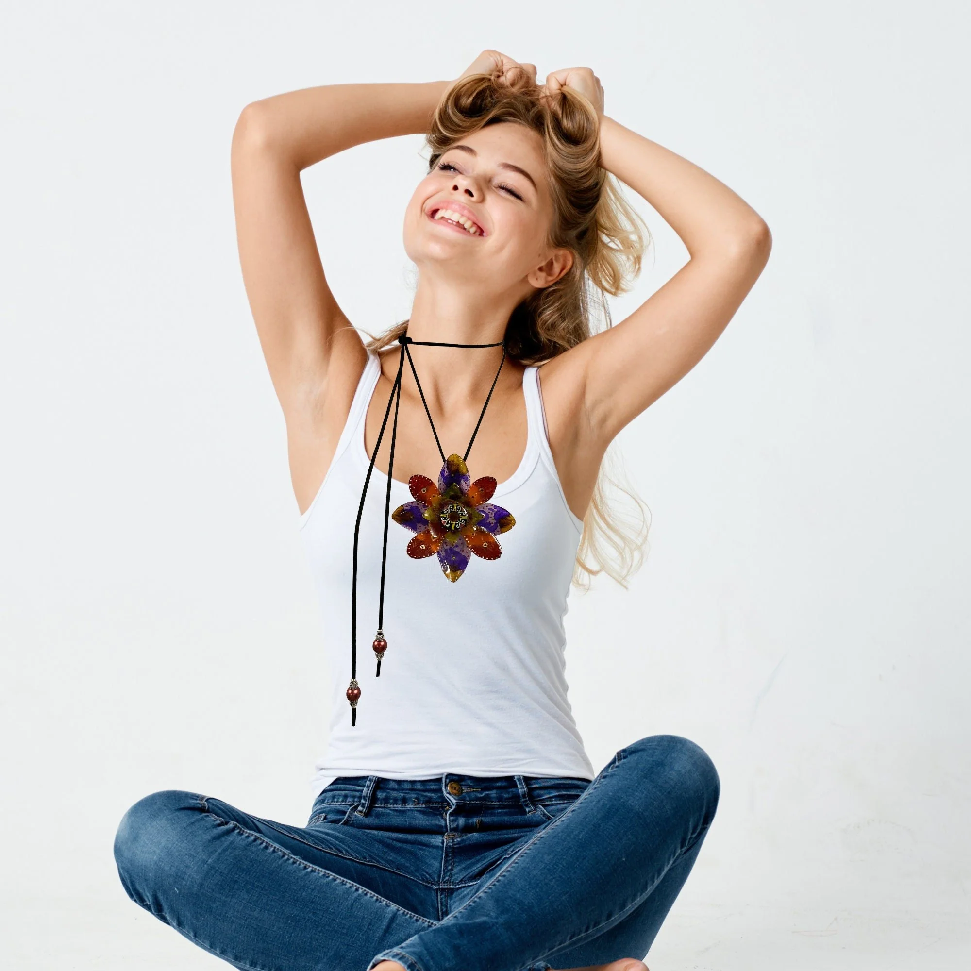 Rich colors - one of a kind - may be worn many different ways. Wear for an elegant night out or with jeans and a tee - this abstract art floral necklace will add the perfect finishing touch to your beautiful outfit!